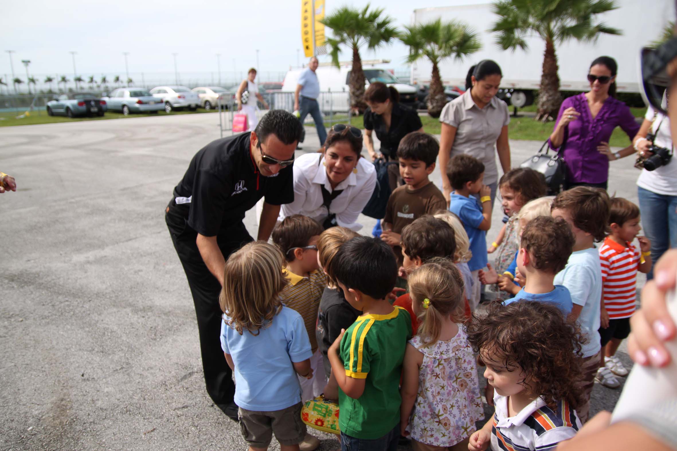 Helio Castroneves recebe o carinho das crianças em dia de agenda movimentada