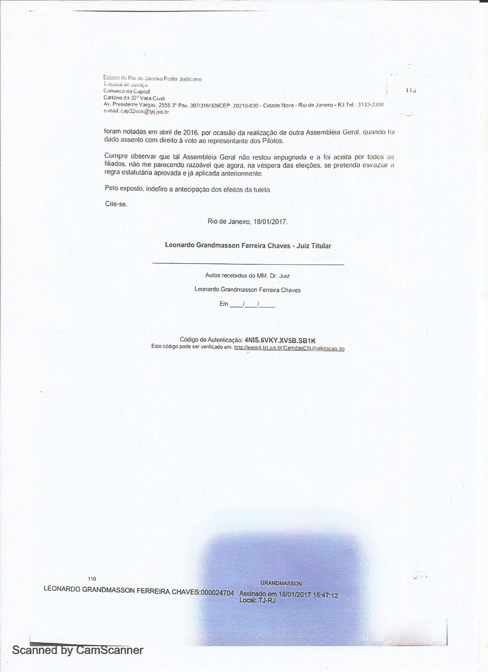 Assinado pelos advogados Marcelo Souza Aiquel e Alper Tadeu Alves Pereira, o processo deu entrada no dia 10 de janeiro último e, segundo despacho do juiz, “pleiteia a Autora [FGA] a concessão de tutela antecipada para que o voto da Associação de Pilotos seja colhido a parte, deixando de ser computado até que se decida o mérito da questão“.
