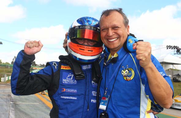 - Augusto Cesário comemorando uma das inúmeras vitórias de sua equipe, dentre elas a do piloto Leonardo Cordeiro na temporada 2009, em Brasília (Foto Luca Bassani)