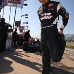 Helio Castroneves no seu ritual que antecede a entrada no cockpit do seu Dallara Honda no Chicagoland Speedway (Foto Dan Helrigel/IRL, Juliet, IL, 27.08.2010)