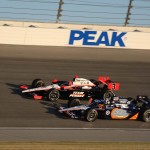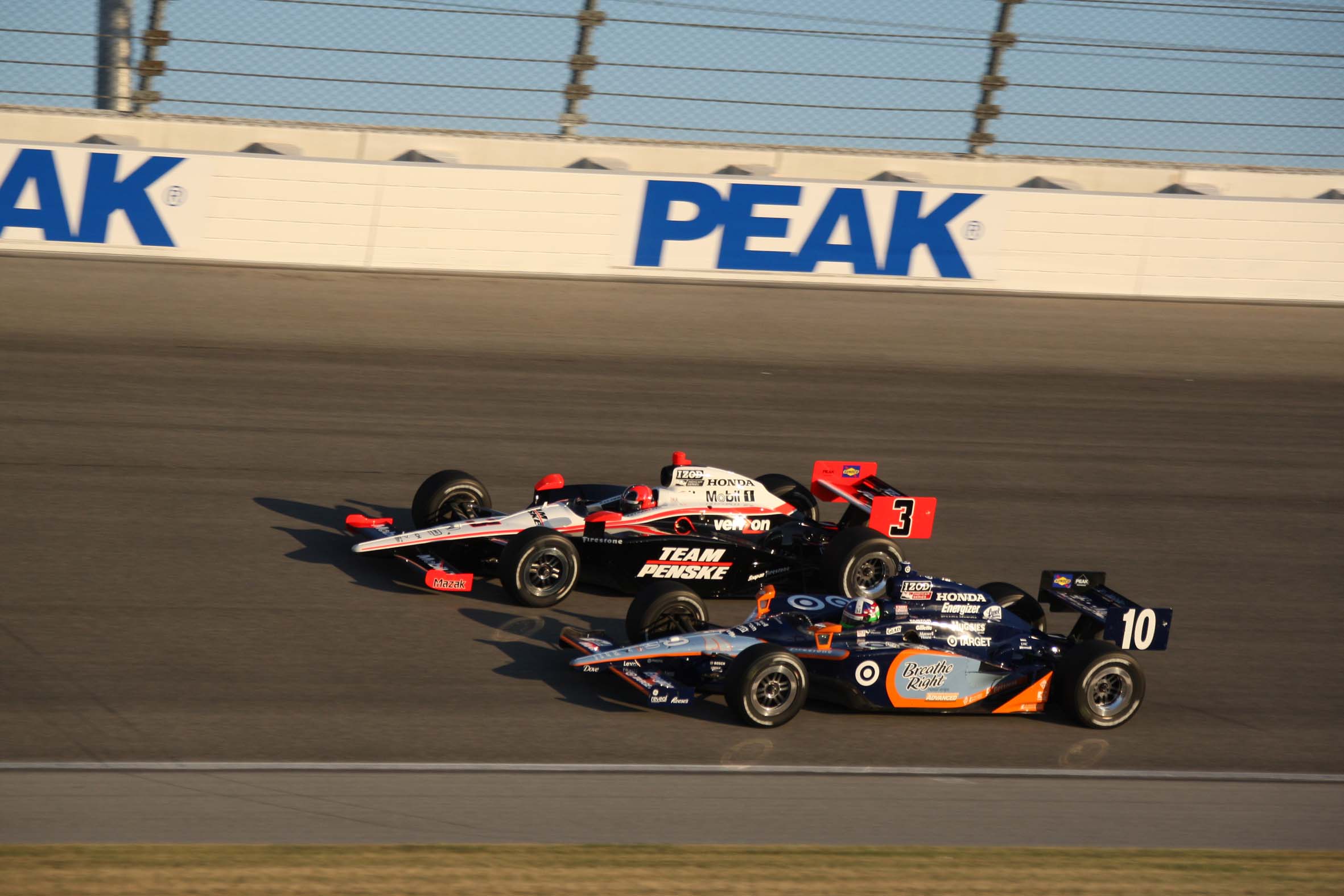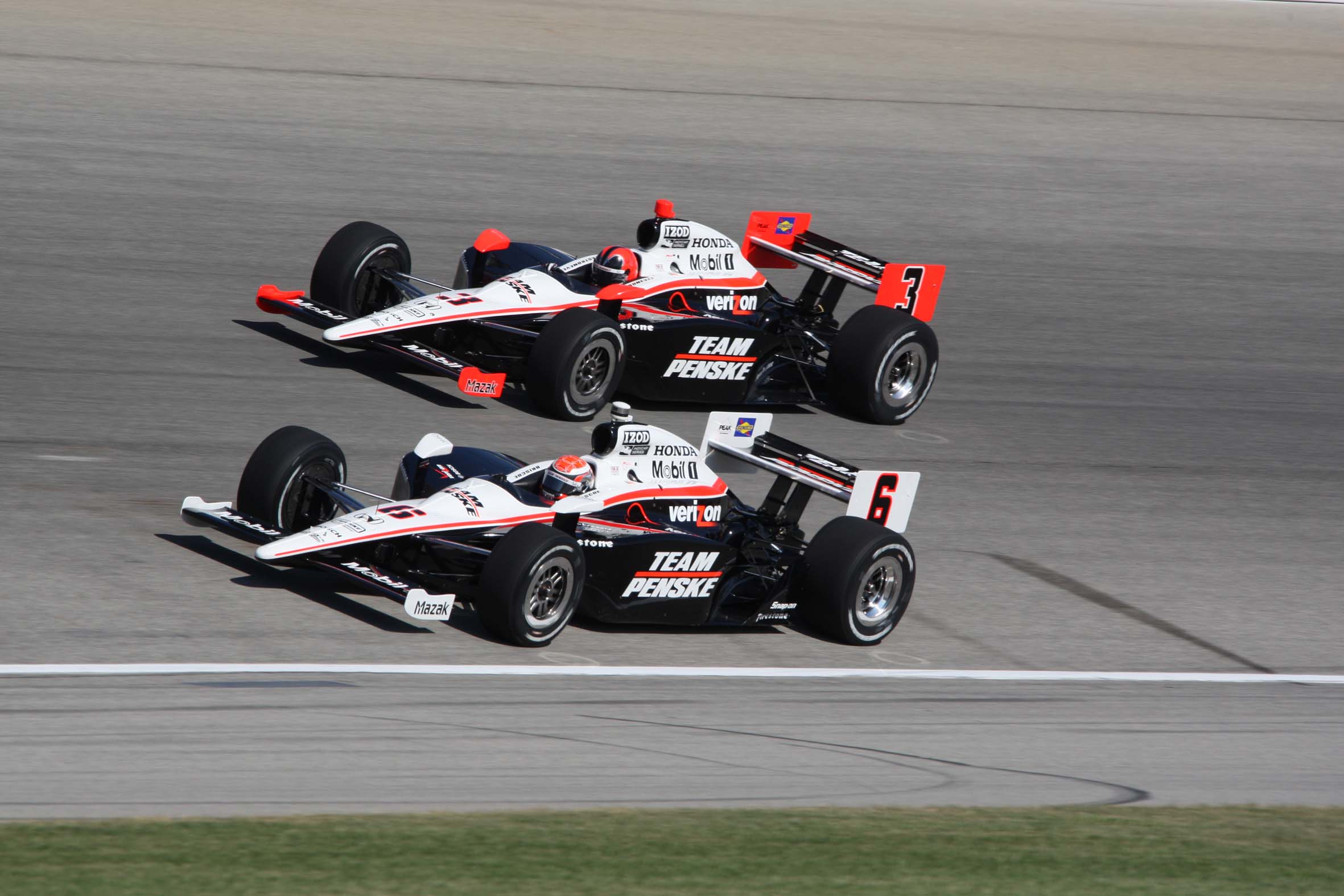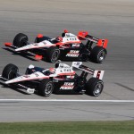 Ryan Briacoe (6) e Helio Castroneves no treino livre desta sexta-feira no Chicagoland Speedway (Foto Jim Haines/IRL, Juliet, IL, 27.08.2010)