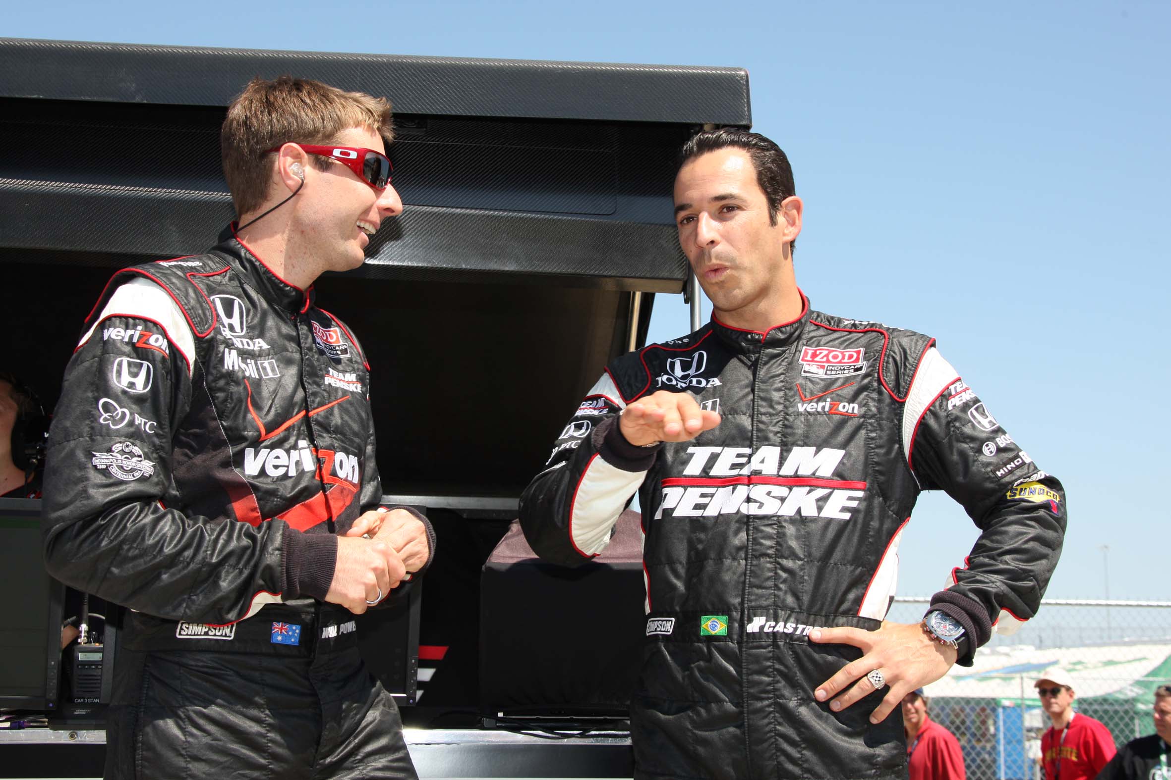 Will Power e Helio Castroneves pouco antes do Qualifying no Chicagoland Speedway (Foto Jim Haines/IRL, Juliet, IL, 27.08.2010)