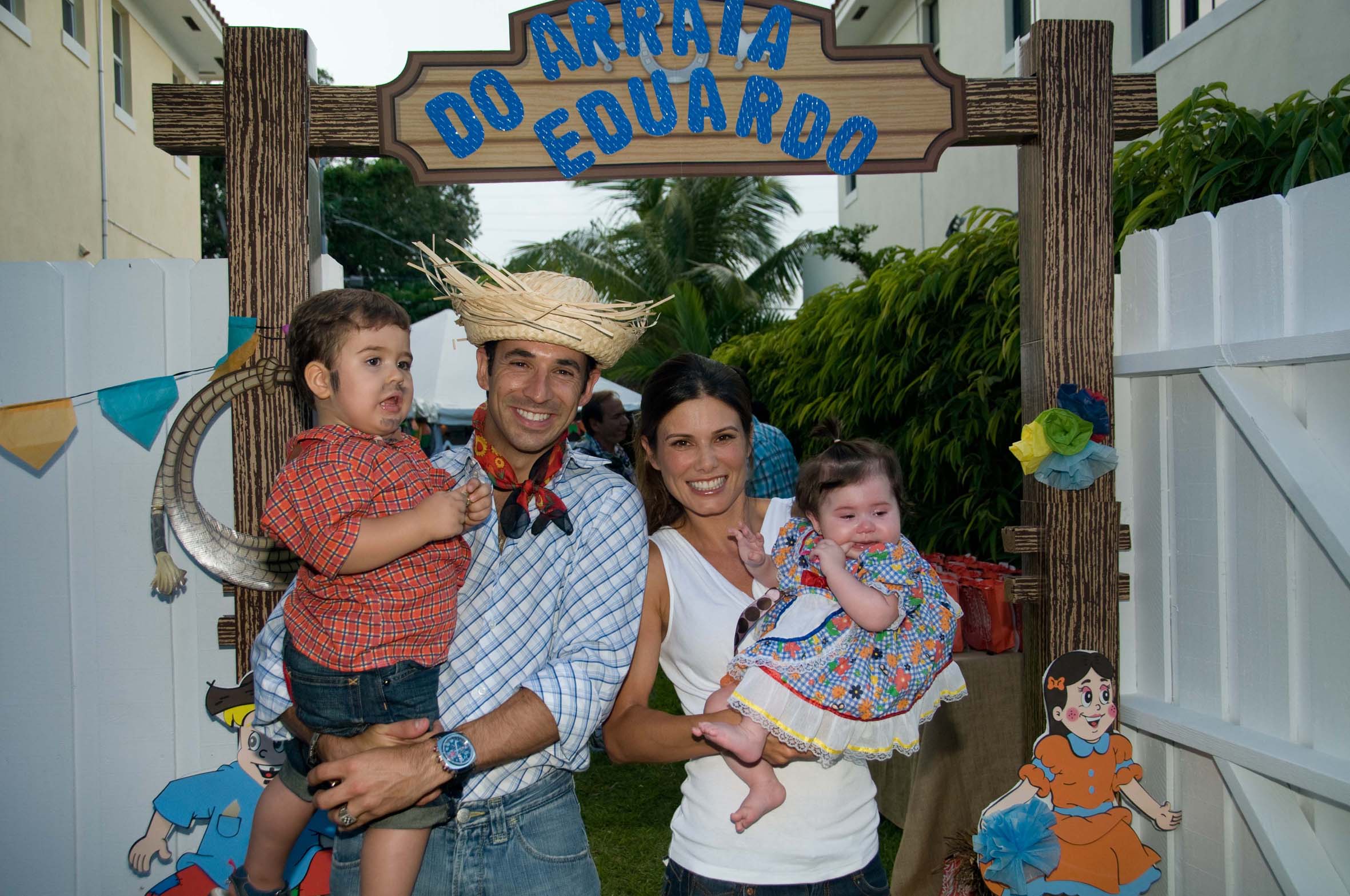 Festa junina brasileira no USA – Helio Castroneves com o sobrinho Eduardo no colo; Katiucia Castroneves e a sobrinha Mikaella (Foto Tati Martins, Miami, USA, 12.06.2010)