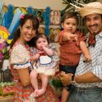 Festa junina brasileira no USA – Helio Castroneves com o sobrinho Eduardo no colo; Adriana Henao e a filha do casal, Mikaella (Foto Tati Martins, Miami, USA, 12.06.2010)