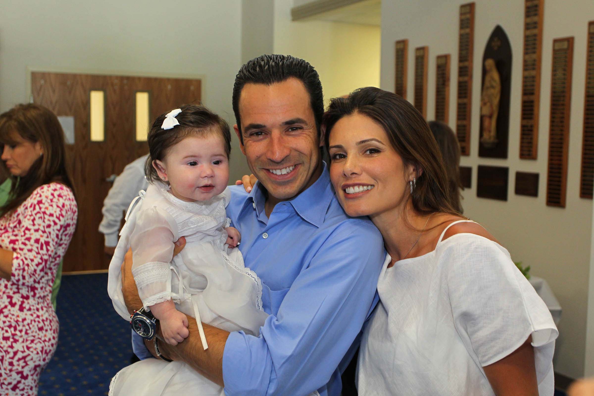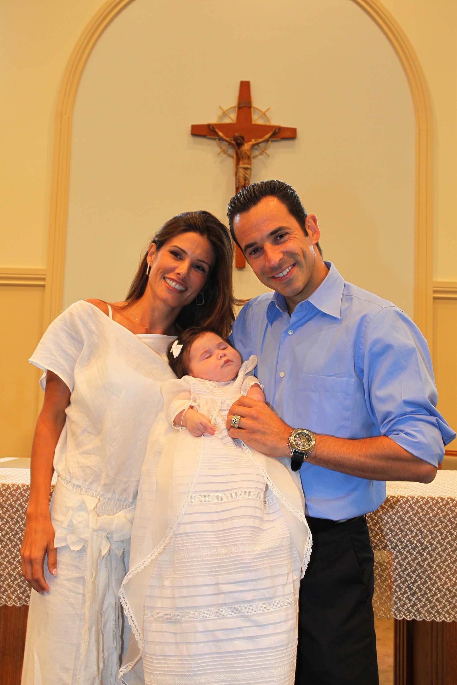 Helio Castroneves, a namorada Adriana Henao e a filha do casal, Mikaella, no batizado em Indianapolis (Foto Carsten Horst, Indianapolis, USA, 31.05.2010)