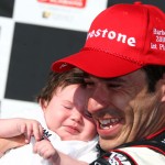 Helio Castroneves comemora com a filha Mikaella a vitória no Barber Motorsports Park (Foto Don Helrigel/IRL, Birmingham, 11.04.2010)