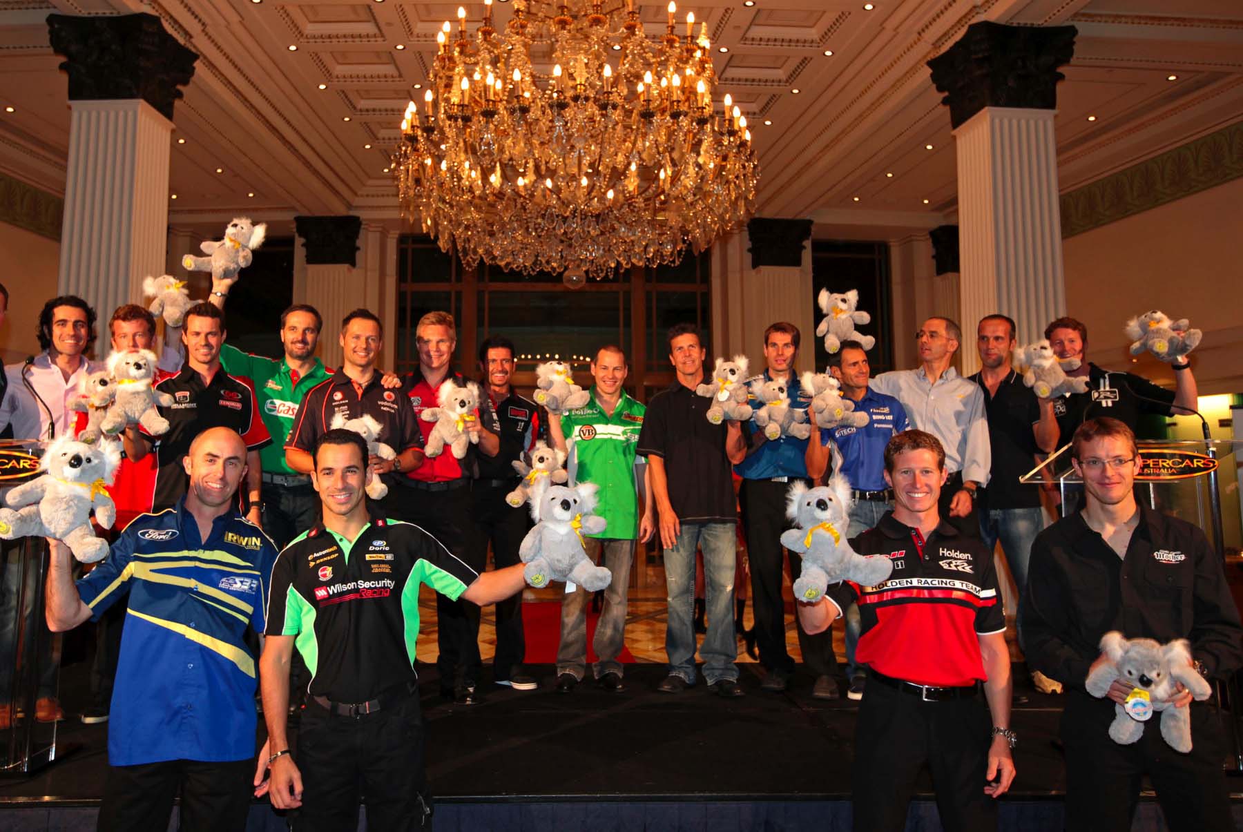 Helio Castroneves (no primeiro plano, à esquerda) e os pilotos estrangeiros convidados para a ARMOR ALL GOLD COAST 600 (Foto EDGE PHOTOGRAPHICS)