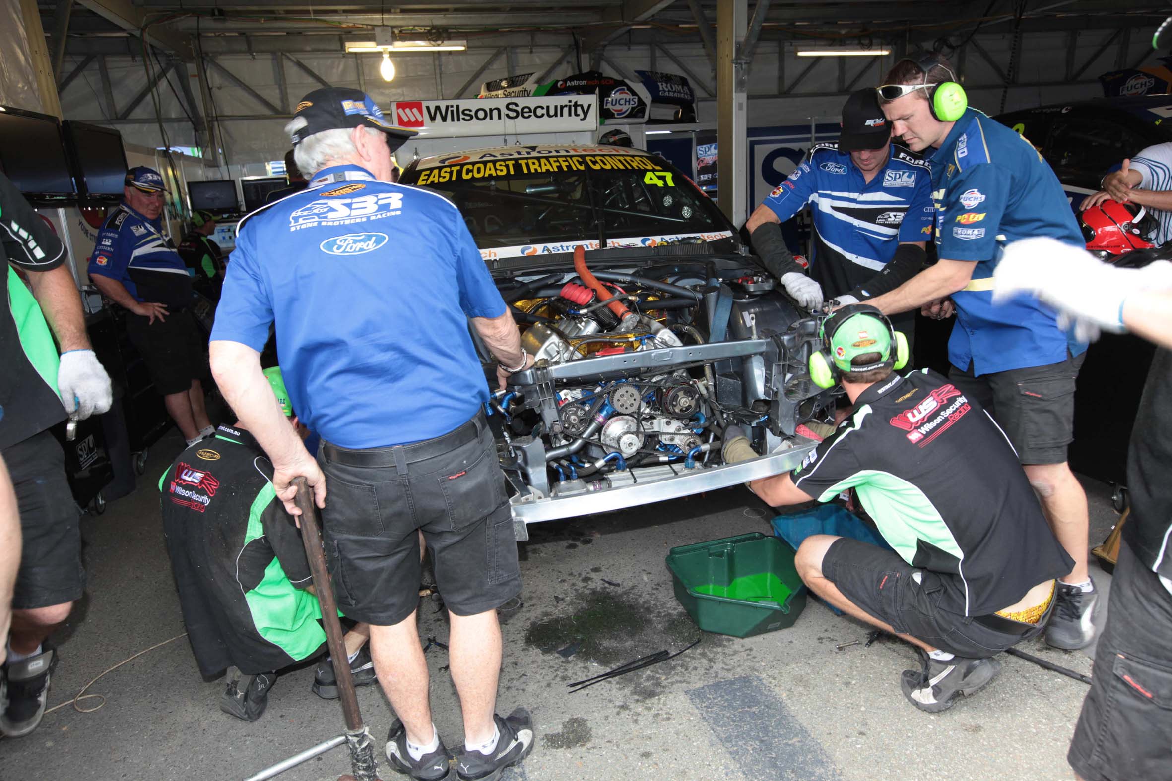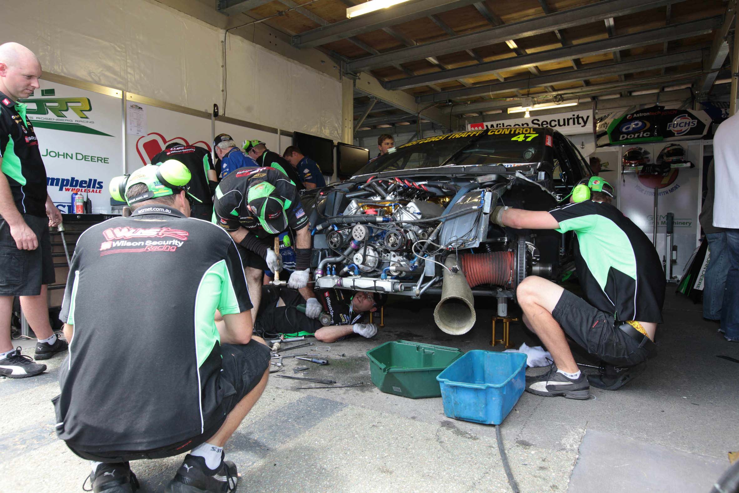 O carro de Helio Castroneves sendo reparado no dia de treinos livres para a ARMOR ALL GOLD COAST 600 (Foto STONE BROTHERS RACING, Surfer’s Paradise, AUS, 22.10.2010)