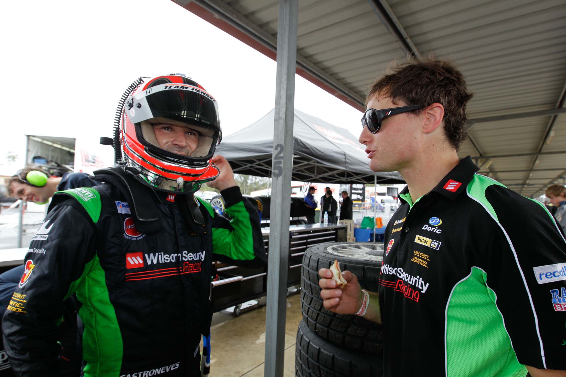 Helio Castroneves e Tim Slade no dia de treinos livres para a ARMOR ALL GOLD COAST 600 (Foto STONE BROTHERS RACING, Surfer’s Paradise, AUS, 22.10.2010)
