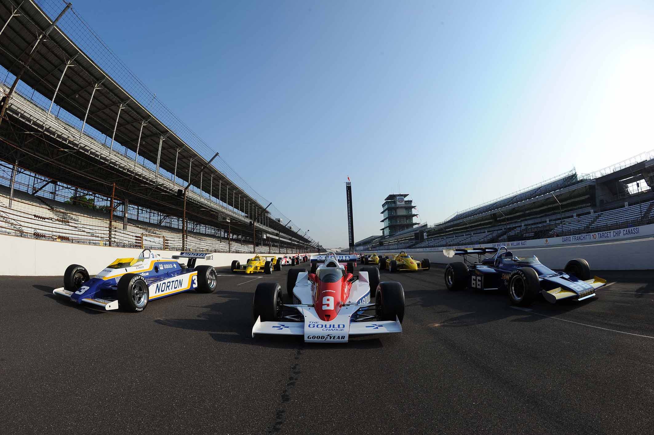 Todos os carros de Roger Penske que venceram a Indy 500, dentre eles os três usados por Helio Castroneves; alguns estarão no Goodwood Festival of Speed (Foto STEVE SWOPE/TEAM PENSKE, Indianapolis, IN, 31.05.2011)