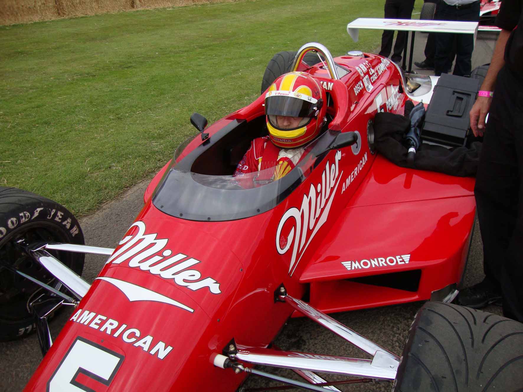 Goodwood 2011: Helio Castroneves e o March Cosworth com o qual Danny Sullivan, em 1985, venceu a Indy 500 pelo Team Penske (Foto STEVE SHUNCK/IRL)