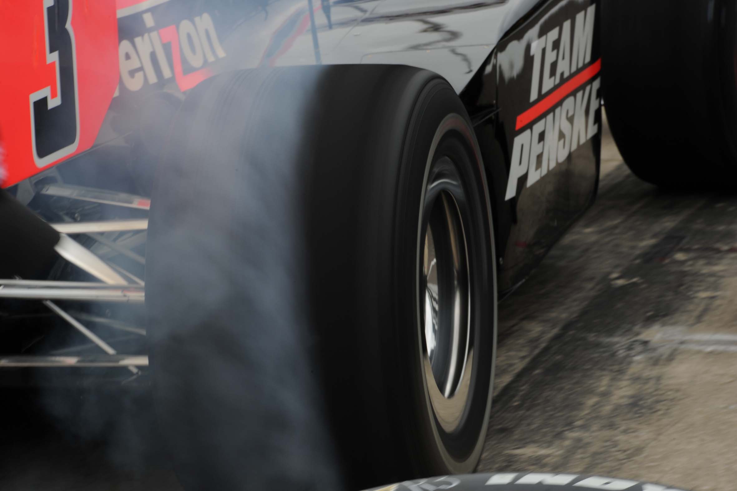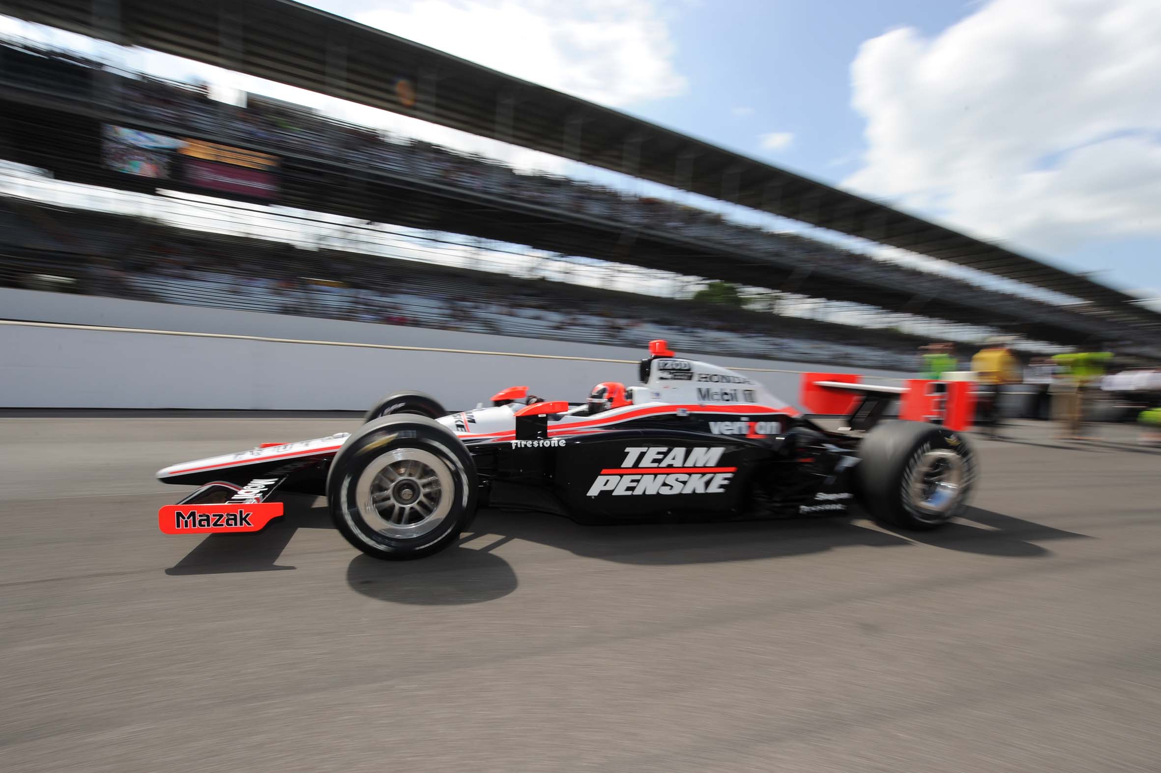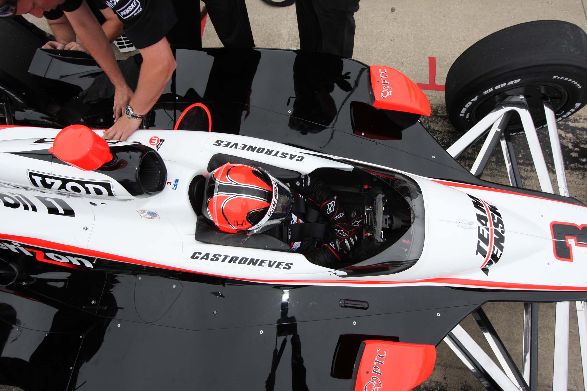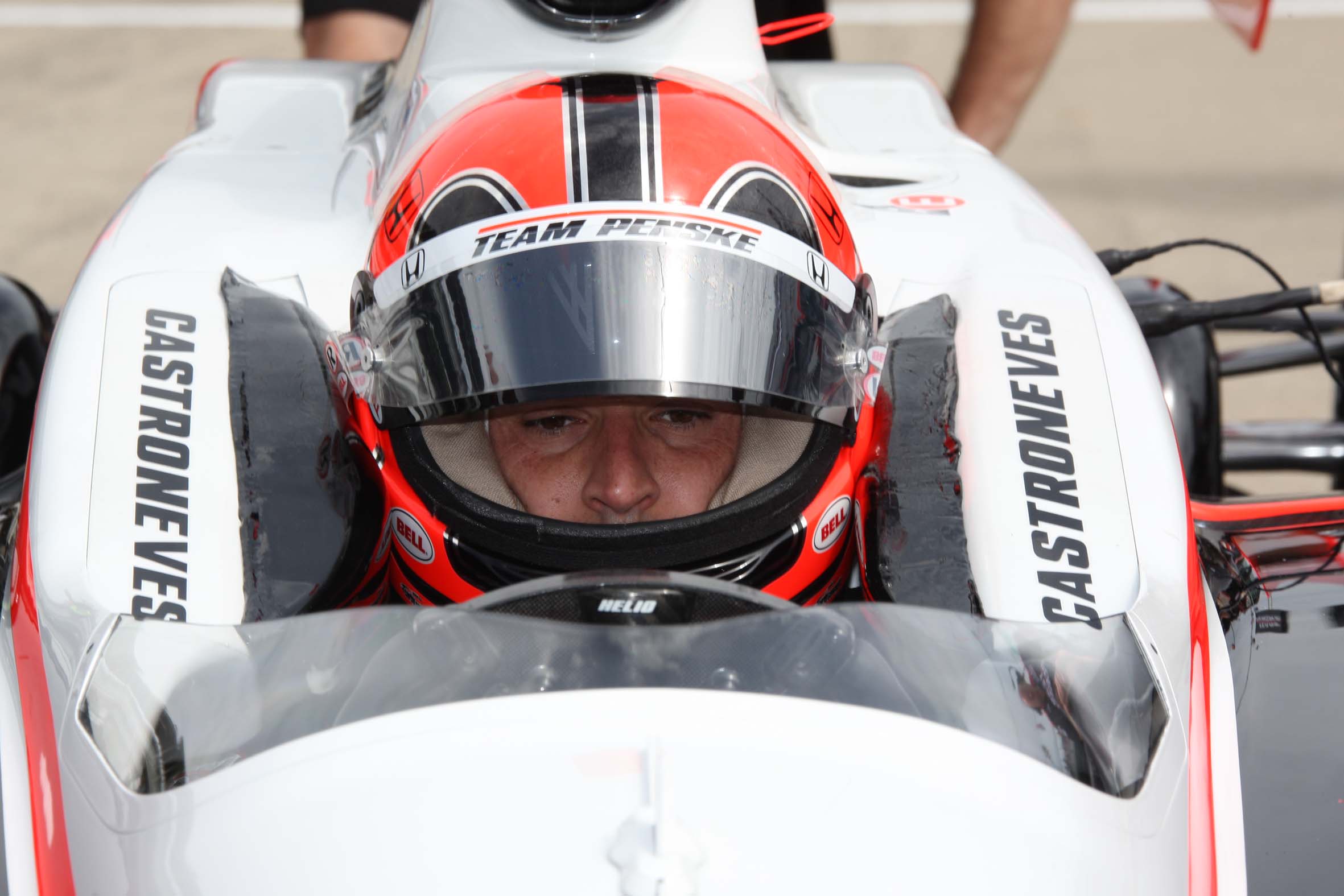 Detalhe de Helio Castroneves deixando o pit durante o Pole Day, do qual sagrou-se campeão (Foto Steve Shope/Team Penske, Indianapolis, 22.05.2010)