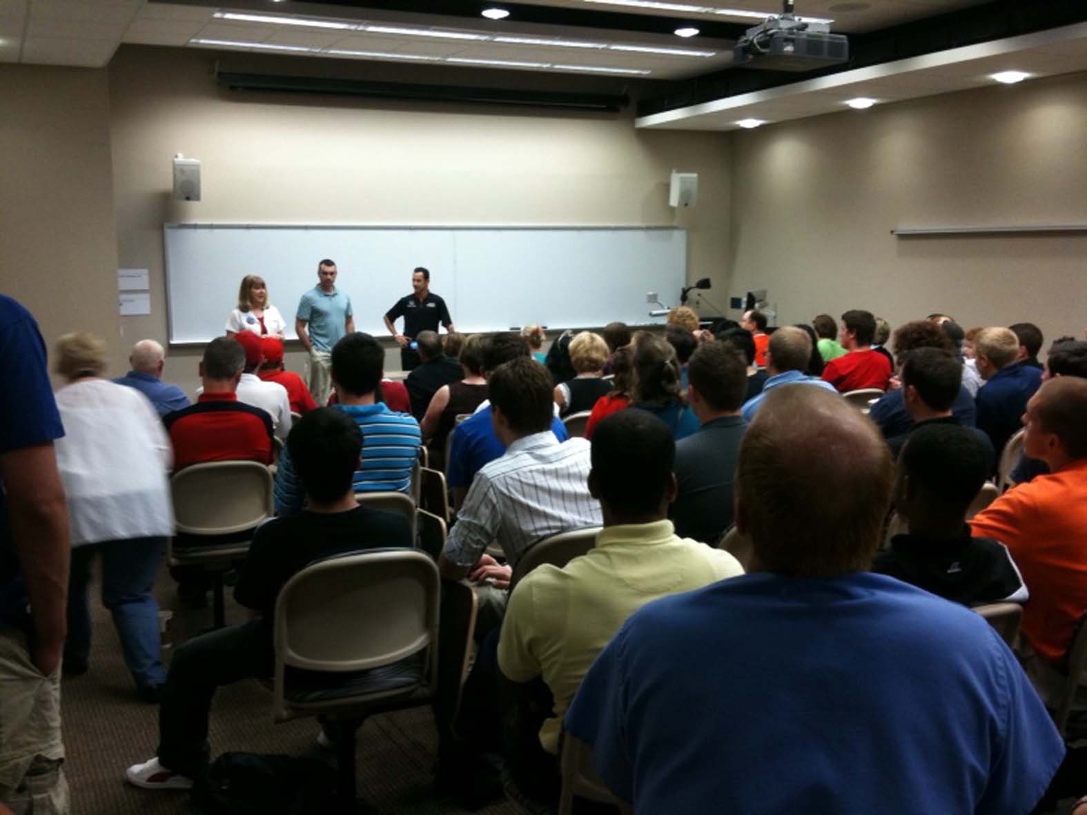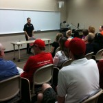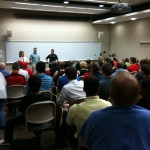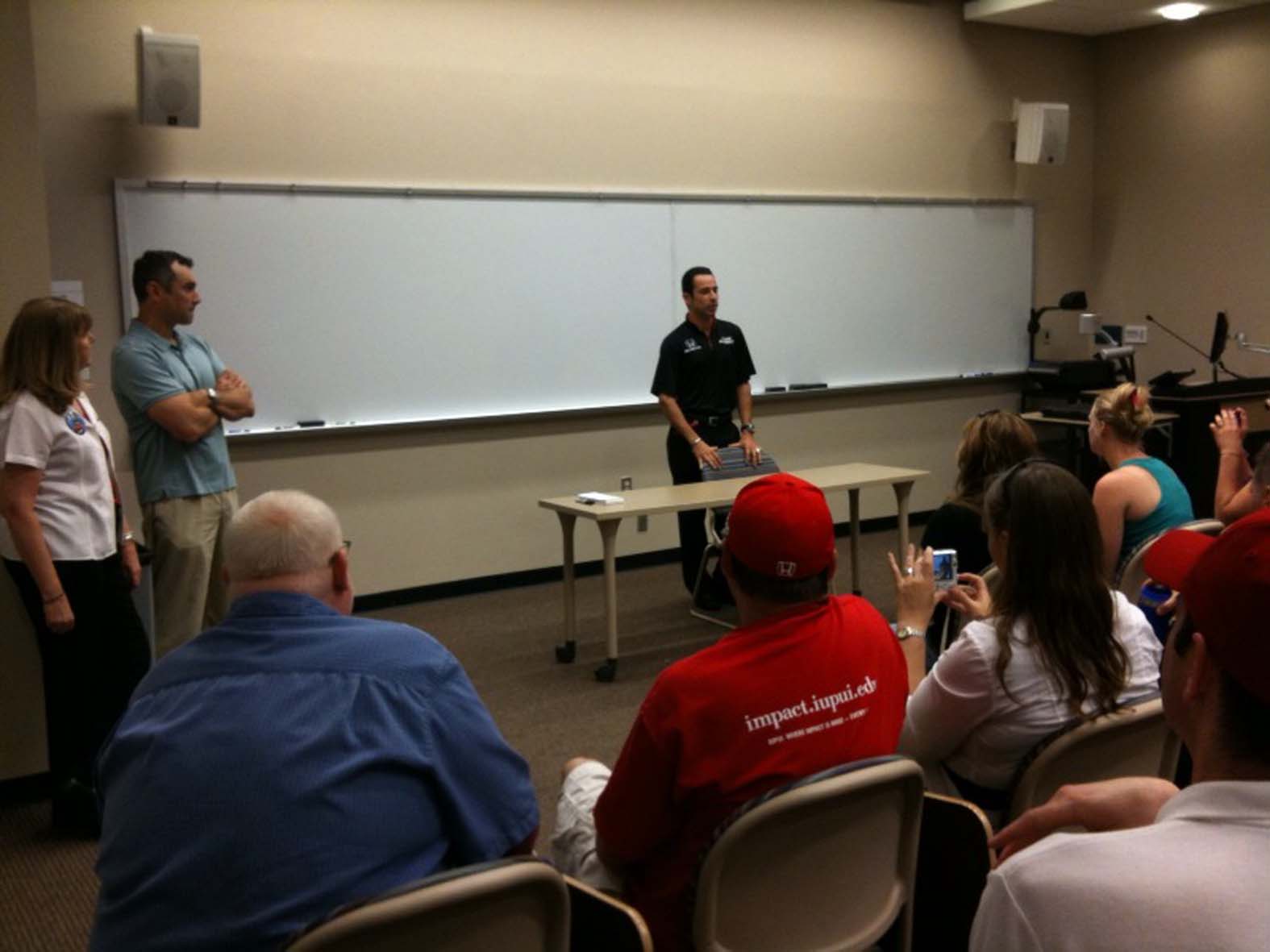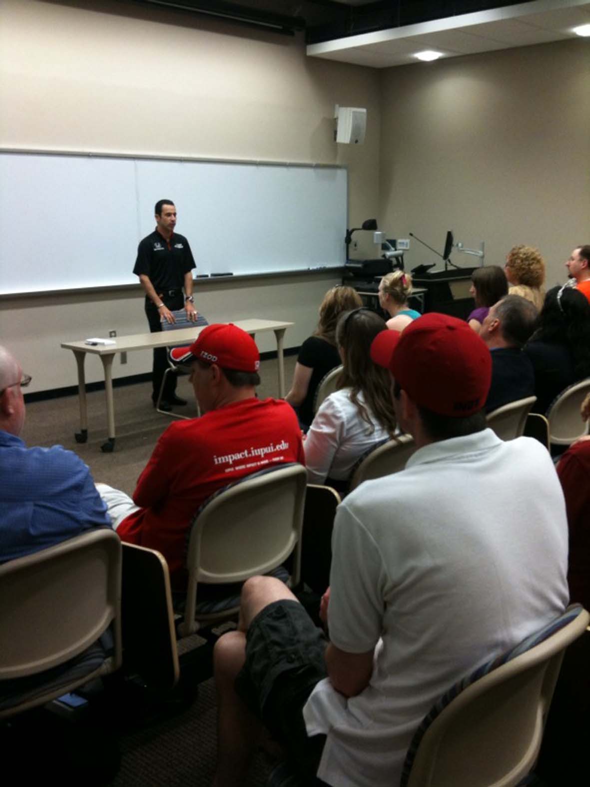 Helio Castroneves ministra palestra para futuros engenheiros de motorsport (Foto Katiúcia Castroneves, Indiana University, Indianapolis, 26.05.2010)