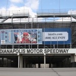 Indy 500 2010 Pré – Entrada do Indianapolis Motor Speedway, com o imagem de Helio Castroneves em destaque (Foto Ron McQueeney/IRL)