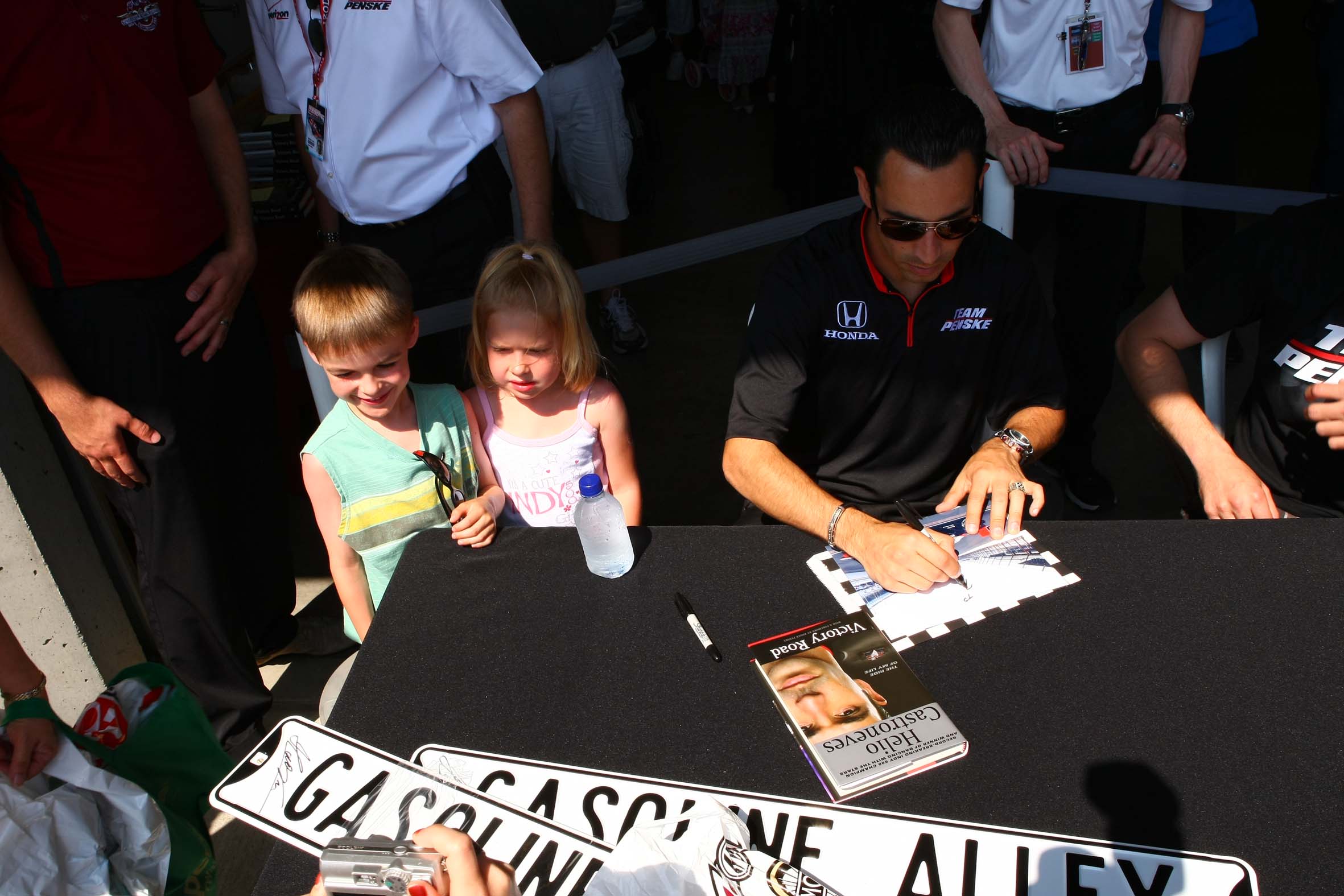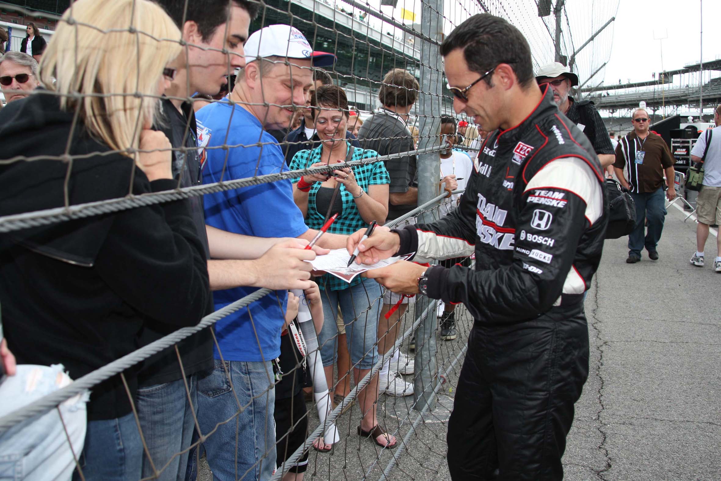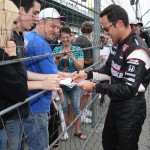Indy 500 2010 Day 1 – Helio Castroneves atende aos fãs antes do início dos treinos (Dan Helrigel/IRL, Indianapolis, 15.05.2010)