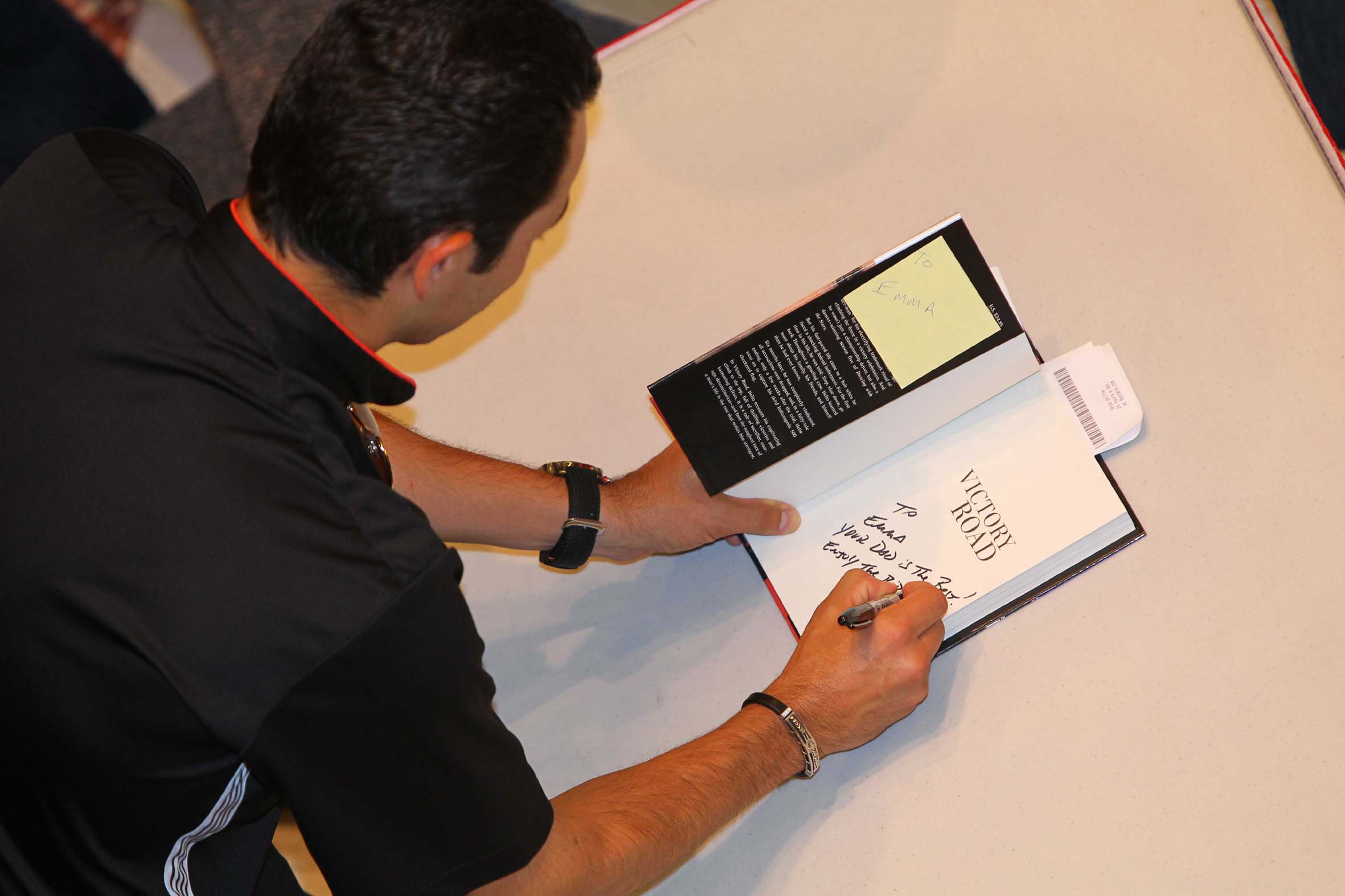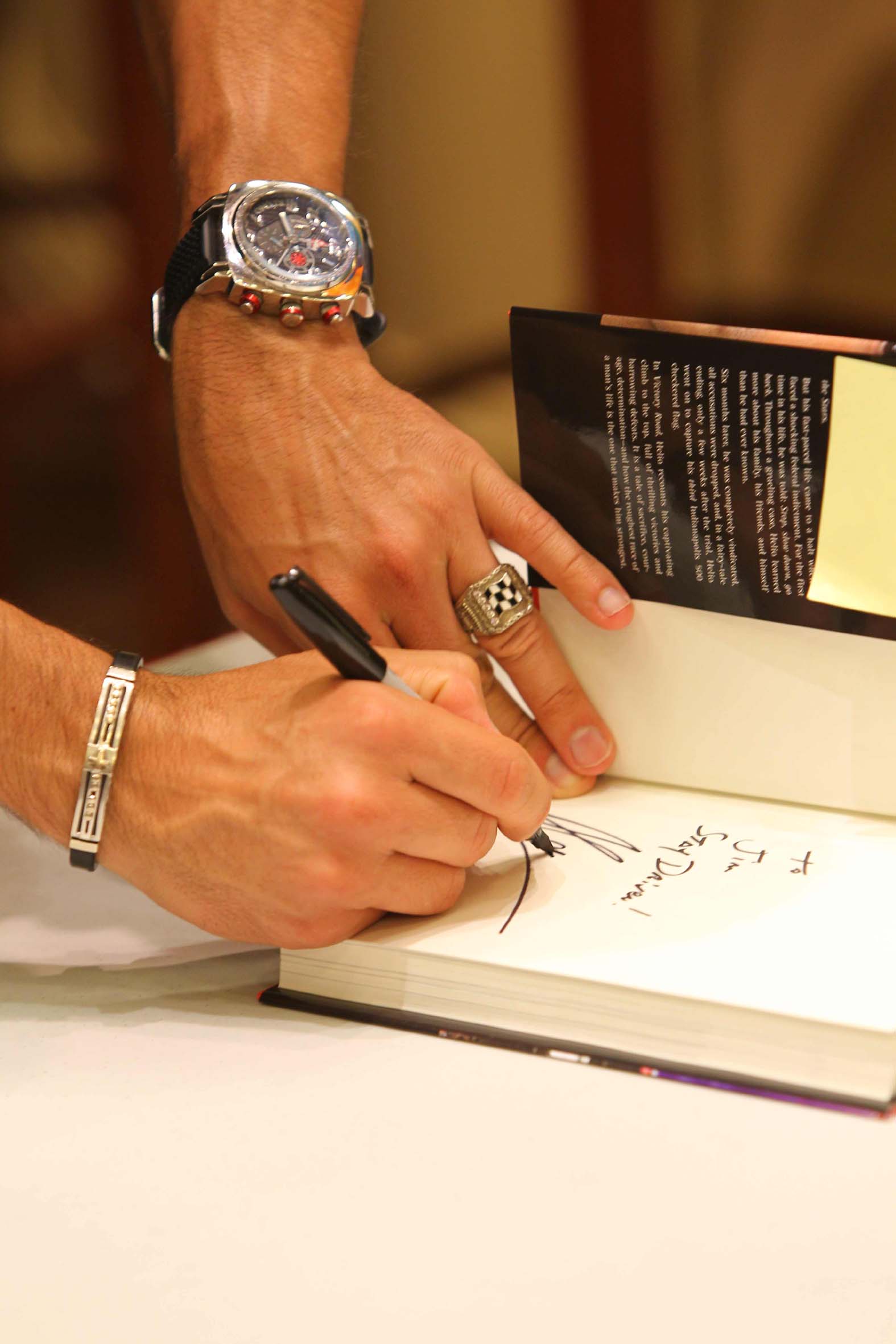 Helio Castroneves autografa seu livro seu livro Victory Road na livraria (Foto Carsten Horst, Indianapolis, 26.05.2010)
