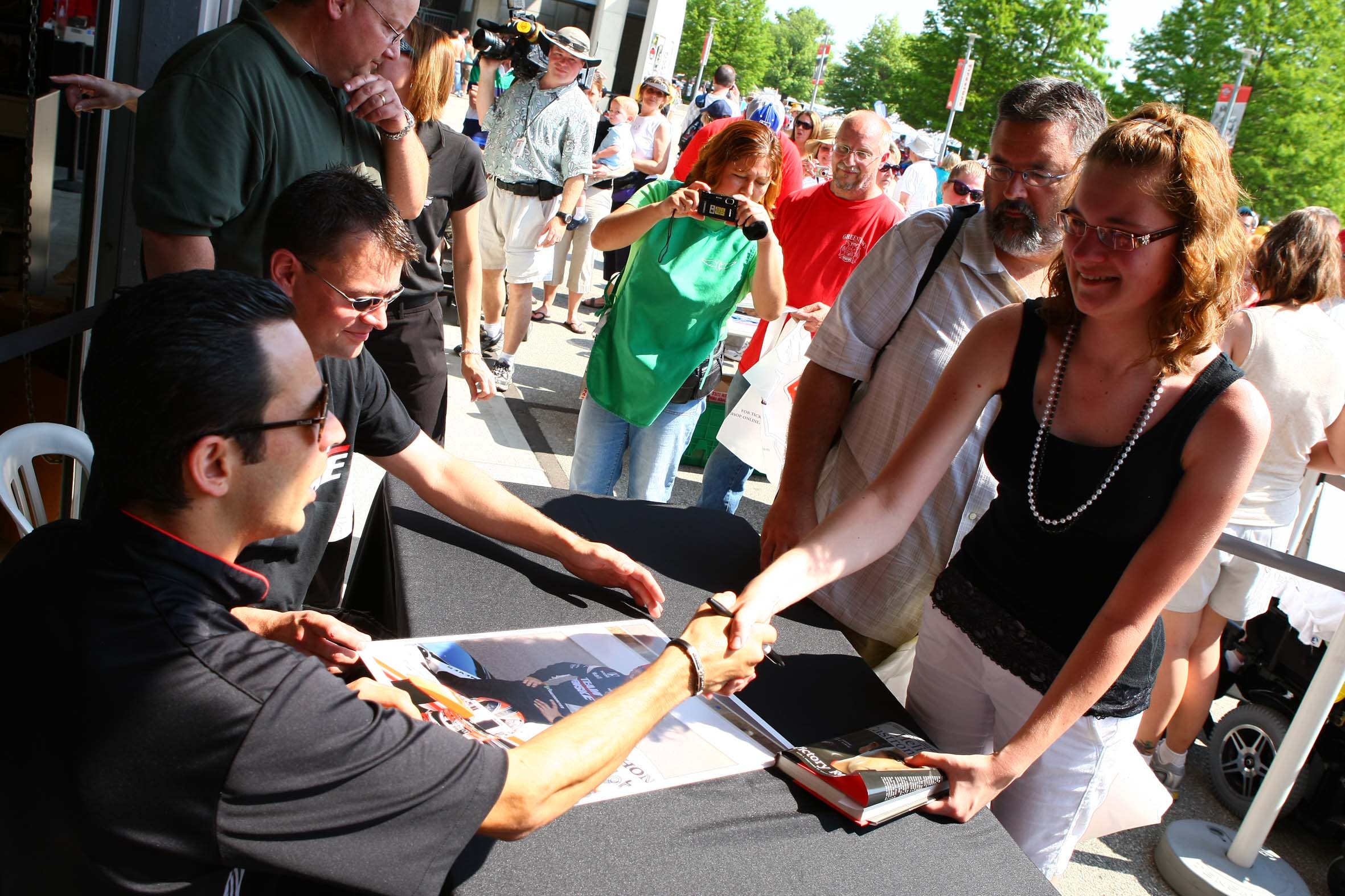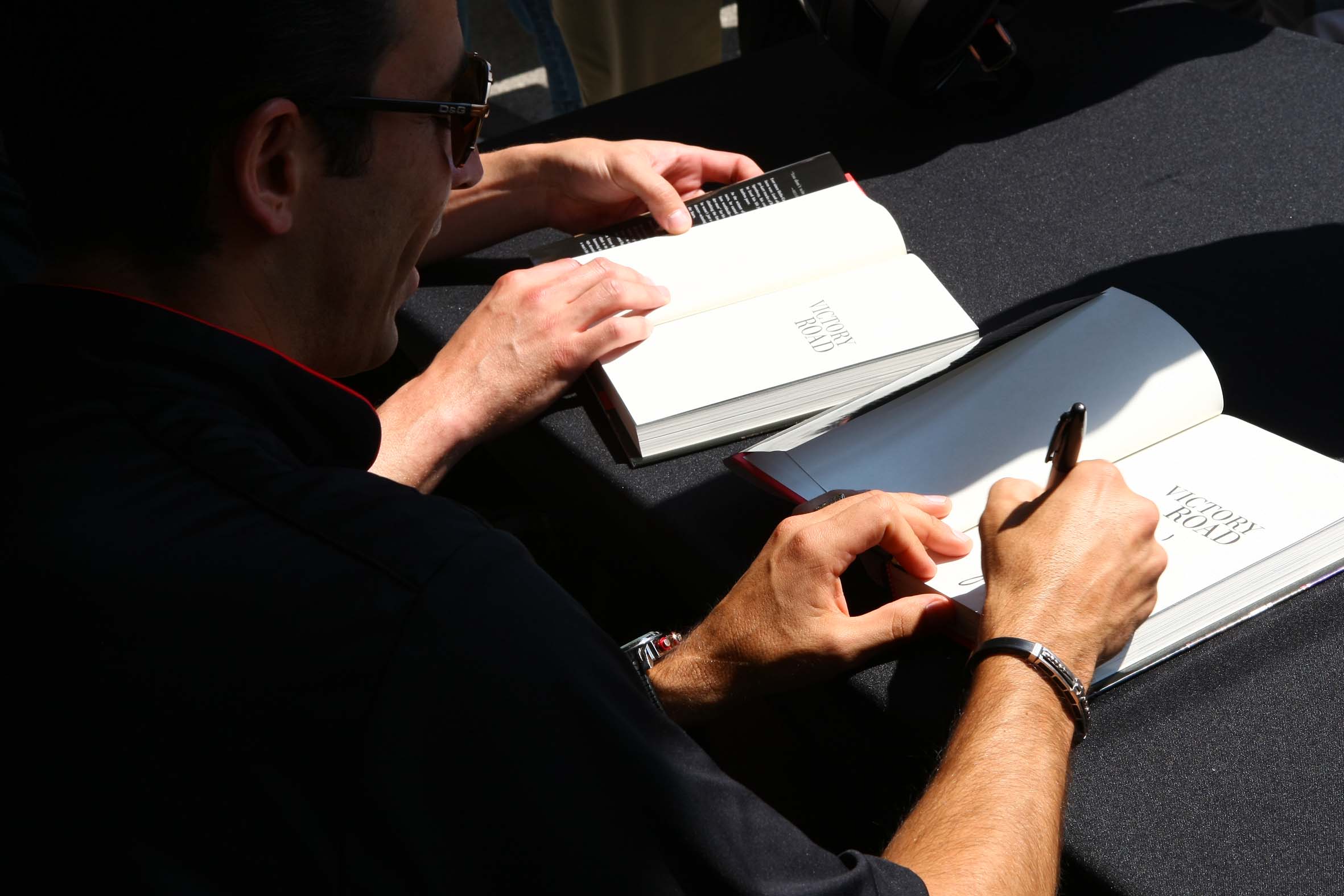 Helio Castroneves assina seu livro Victory Road no Indianapolis Motor Speedway (Foto Dan Helrigel/Indianapolis, 26.05.2010)
