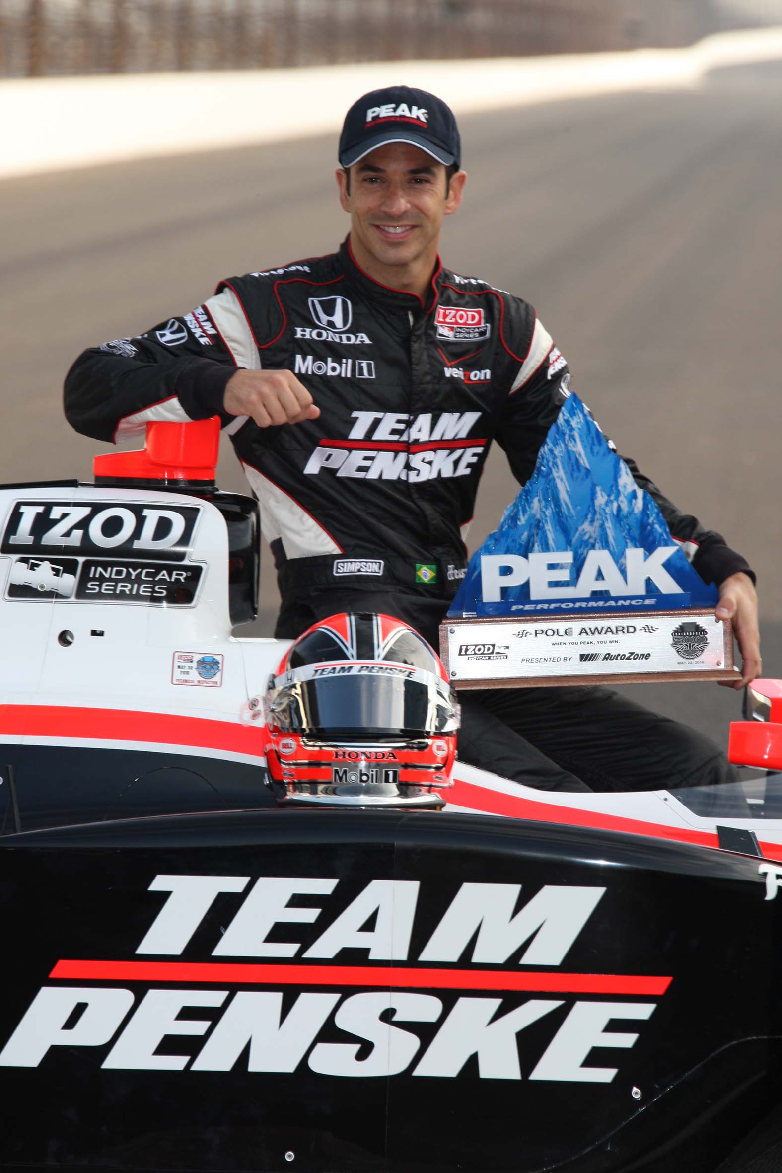 Helio Castroneves conquistou a pole position para a Indy 500 (Foto IRL, Indianapolis, 22.05.2010)