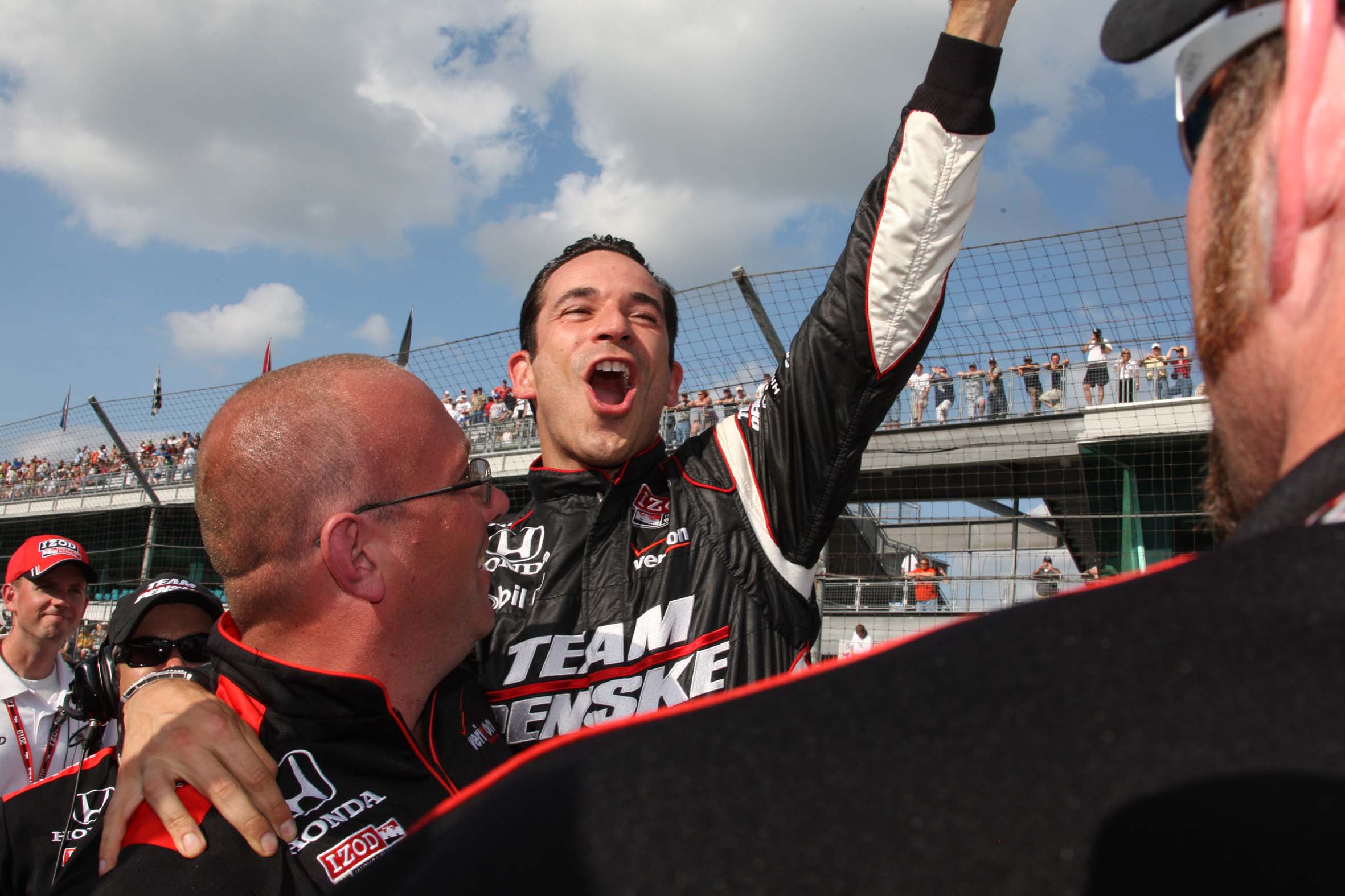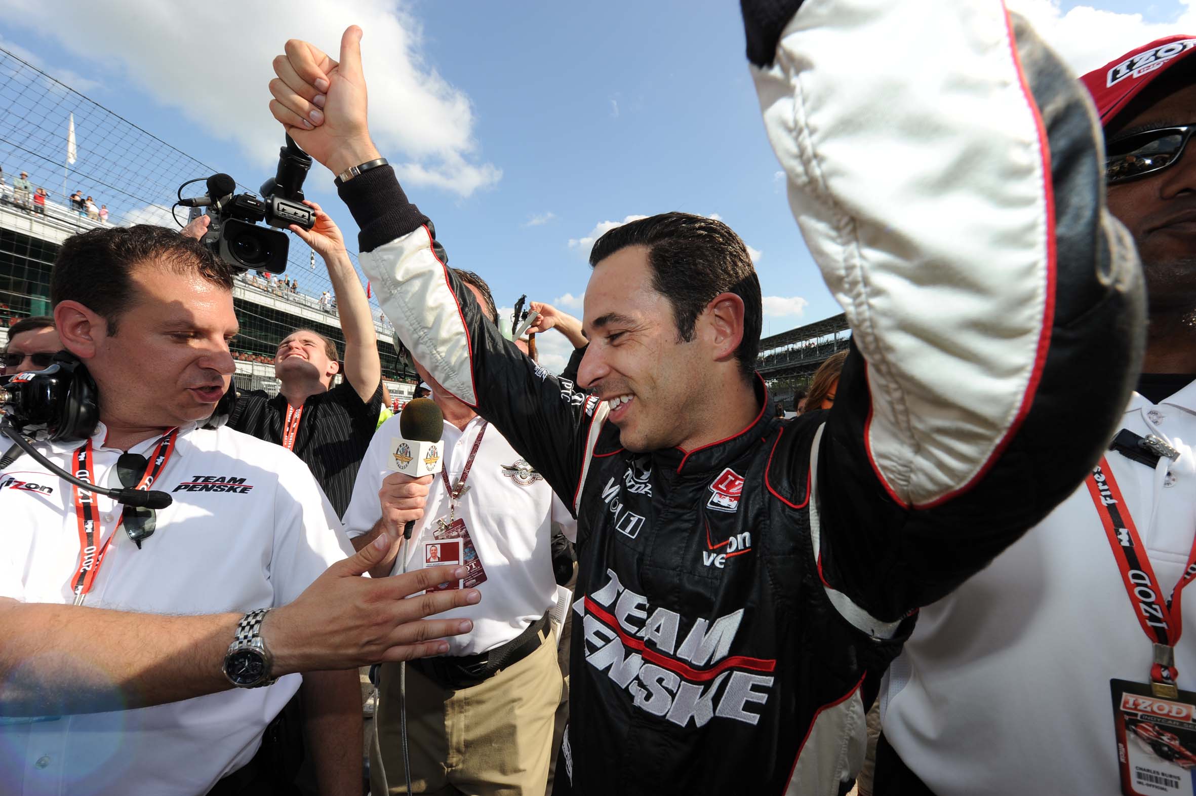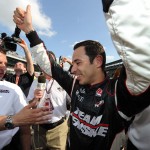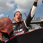 Helio Castroneves comemorando o Pole Day, do qual sagrou-se campeão (Foto Steve Shope/Team Penske, Indianapolis, 22.05.2010)