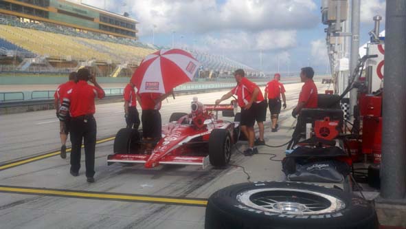 Americo Teixeira Jr, de Homestead (FL) – A segunda-feira começou movimentada no Homestead-Miami Speedway, local da última etapa da Fórmula Indy no próximo sábado. Várias equipes aproveitaram para treinar e as primeiras voltas começaram a ser dadas às 13h00 (14h00) no Brasil. Helio Castroneves (Team Penske), Bia Figueiredo (Dreyer & Reinbold Racing) e Vitor Meira (A. J. Foyt Racing) foram os brasileiros presentes. A temperatura alta, em torno dos 30 graus, marcou o início das atividades, que se prolongou até as 21h00, no horário local.