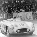 Juan Manuel Fangio na prova Targa Florio de 1955 com Mercedes-Benz 300 SLR (Foto fornecida pelo serviço de imprensa da DAIMLER-BENZ)