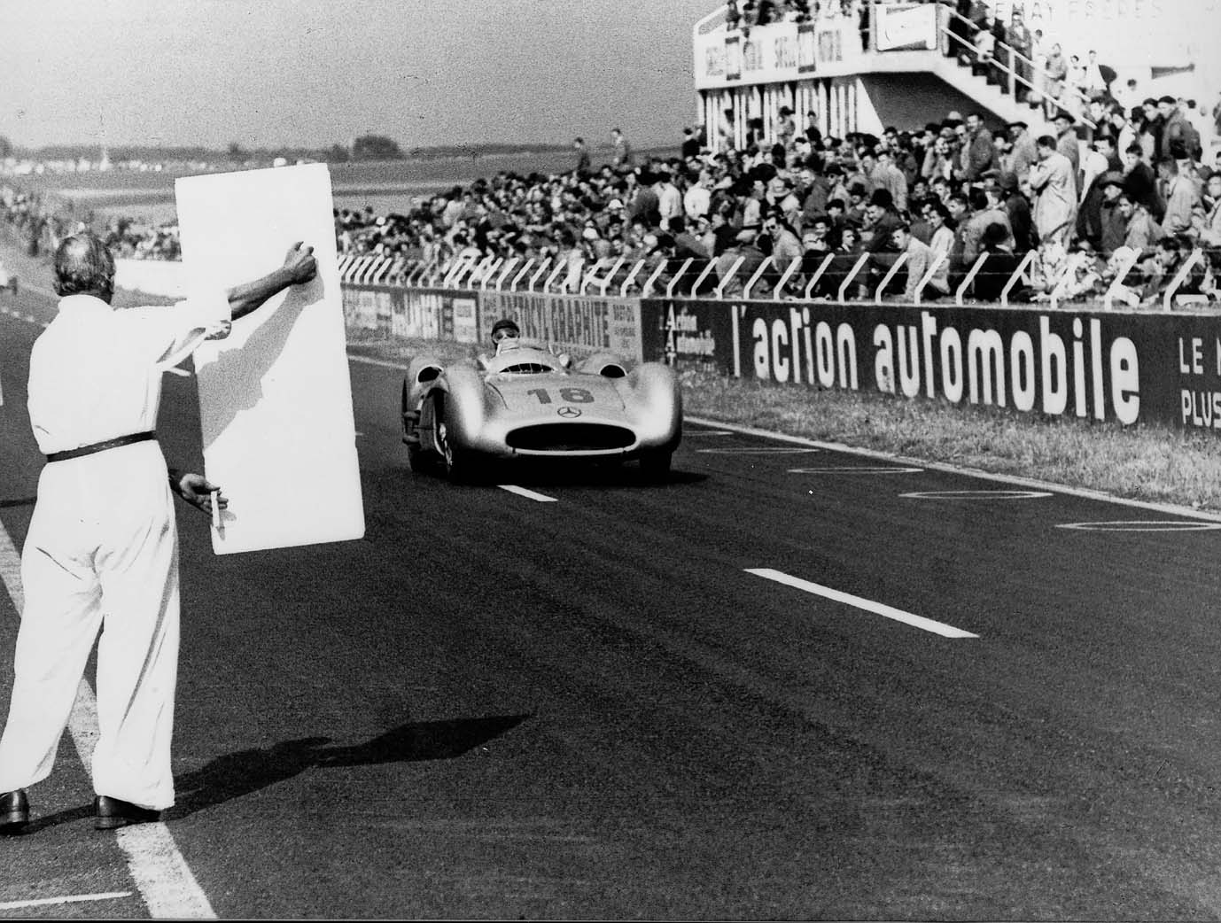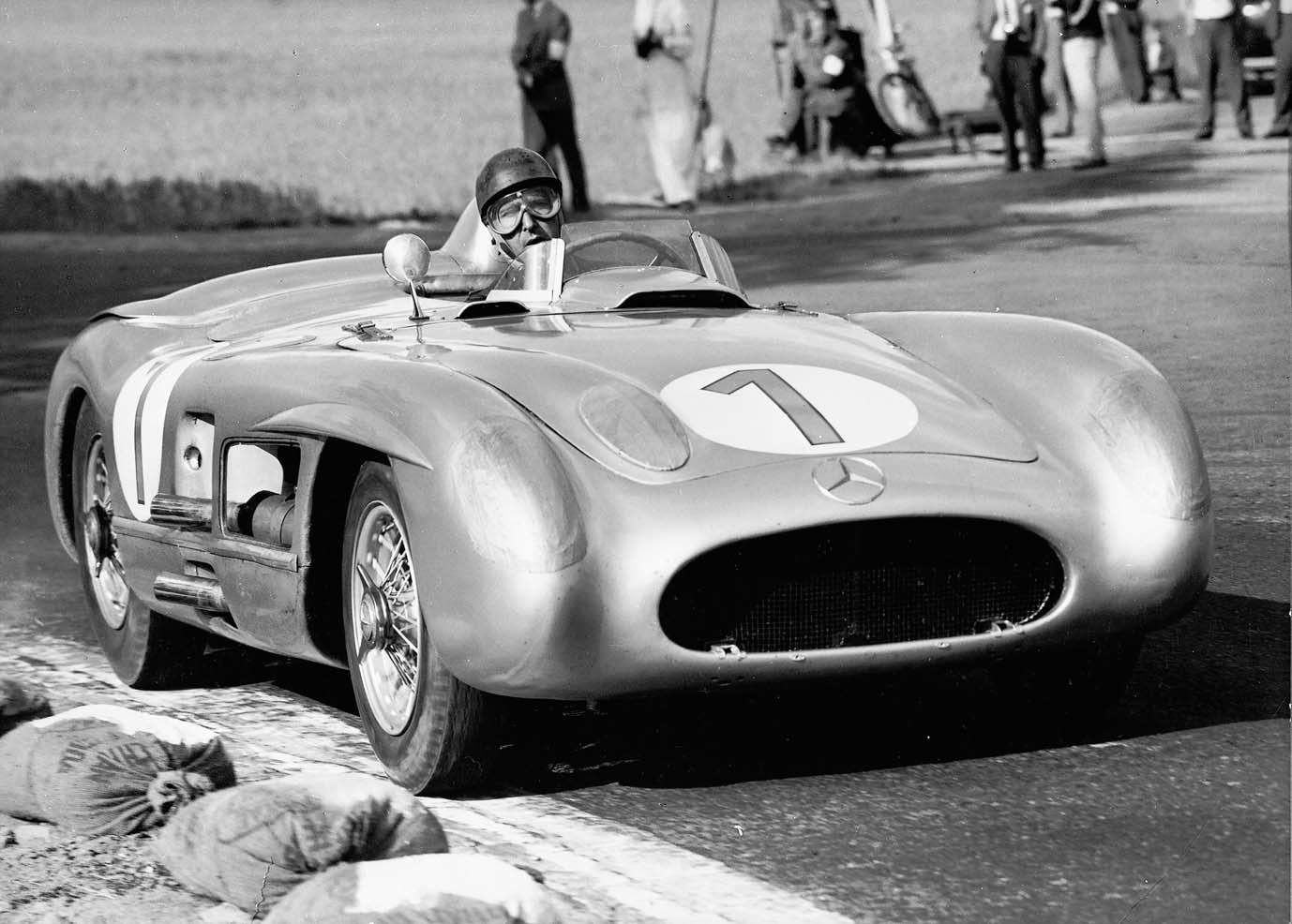 Juan Manuel Fangio vencendo o GP da Suécia de 1955 com Mercedes-Benz 300 SLR (Foto fornecida pelo serviço de imprensa da DAIMLER-BENZ)