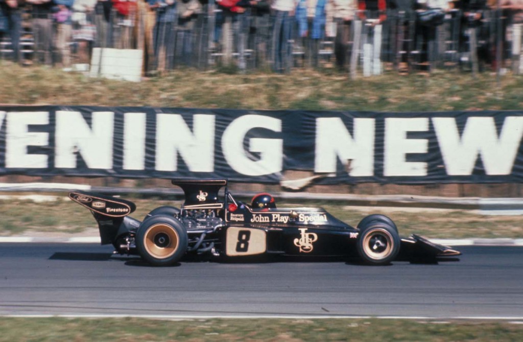 Foto estaque: Mesmo no início das restrições de patrocínio da indústria tabagista nos anos 70, cujo banimento total ocorreria em 2007, a marca Marlboro estava evidente na inconfundíveis cores vermelha e branca. Na Foto, Emerson Fittiupaldi e o Maclaren M23 em 1974 (Foto Fornecida por Ford Motor Company – FMC)