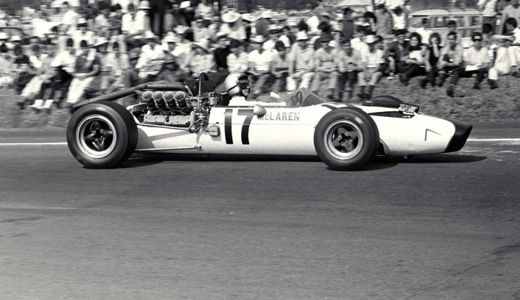 Bruce McLaren no Grande Prêmio do México de 1966 ao volante do McLaren M2B Ford (Foto FORD MEDIA)