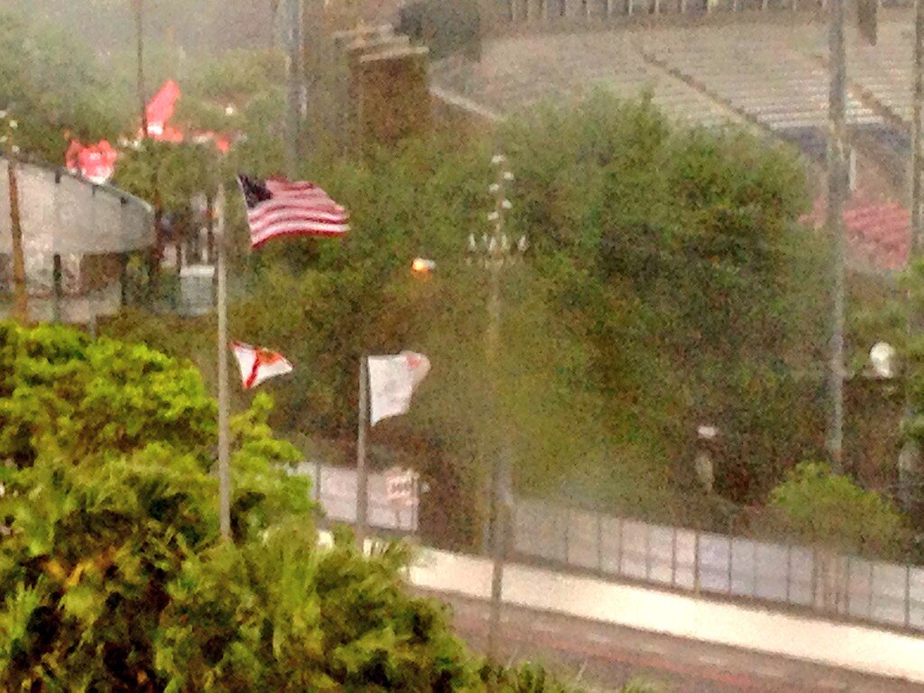 Por Andrea Leite, de St. Petersburg, FL, USA – Tempestades e ventos violentos atingem a costa oeste da Flórida, onde está localizada a cidade de St. Petersburg, local da primeira etapa do 2014 Verizon IndyCar Series. Por esse motivo há um atraso de quase uma hora no início do Qualifying da IndyCar e já está oficialmente cancelada a prática para formação do grid da Indy Lights.